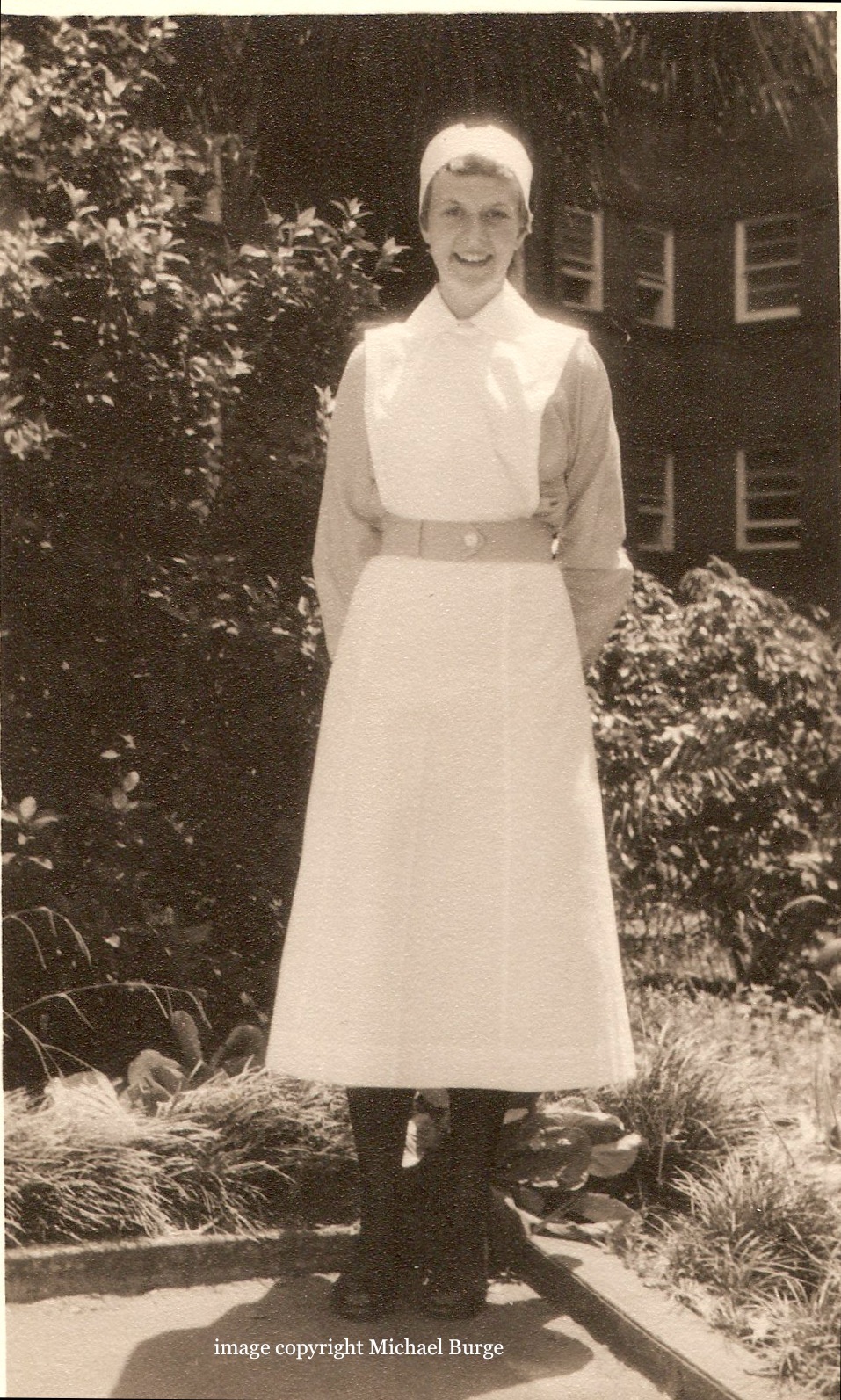 Pat Burge was a nurse, an excellent old school carer who knew her stuff. Born at the tail end of the generation of Australian women who were encouraged into teaching, secretarial work, or nursing (and little else), Patricia Crawford (as she was born) did the unthinkable for a North Shore girl and got herself enrolled to train at Royal Prince Alfred (RPA) Hospital in Camperdown.