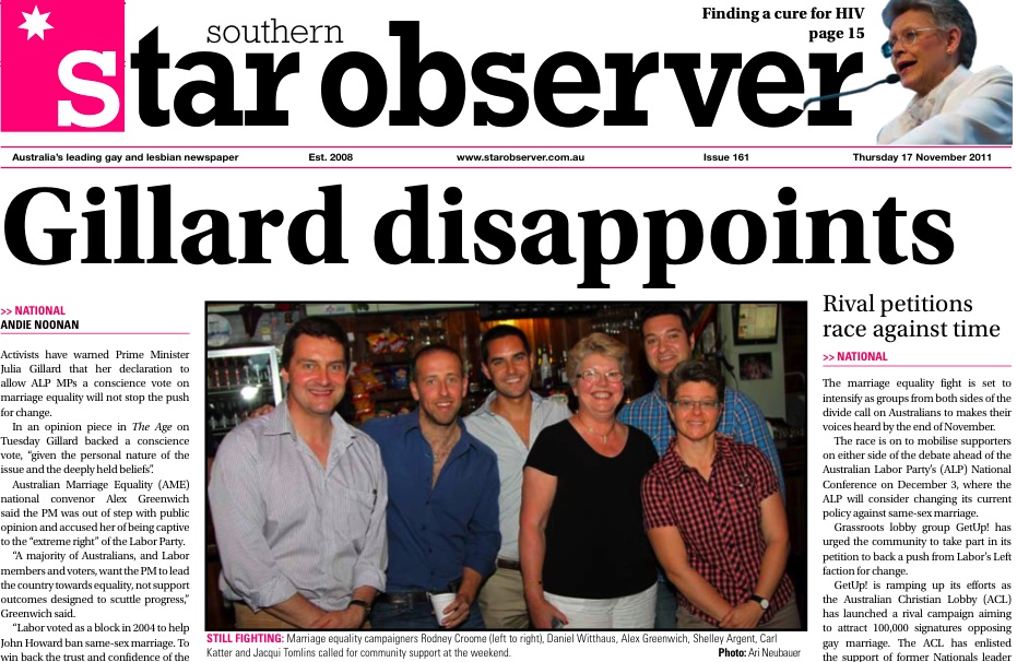 In October 1998, for two men to live together in a de-facto relationship was still a political act. The Property (Relationships) Legislation Amendment Act was not created until the following year, requiring further amendment in 2002, 2008 and 2009 to remove discrimination against same-sex attracted people financially in almost 100 other pieces of state and federal legislation.